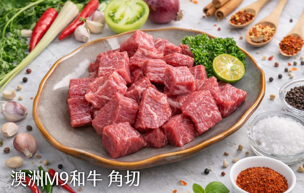 ※澳洲M9和牛角切:200g/盤。一口一個剛剛好,四面煎至金黃,鎖住滿滿肉汁。
