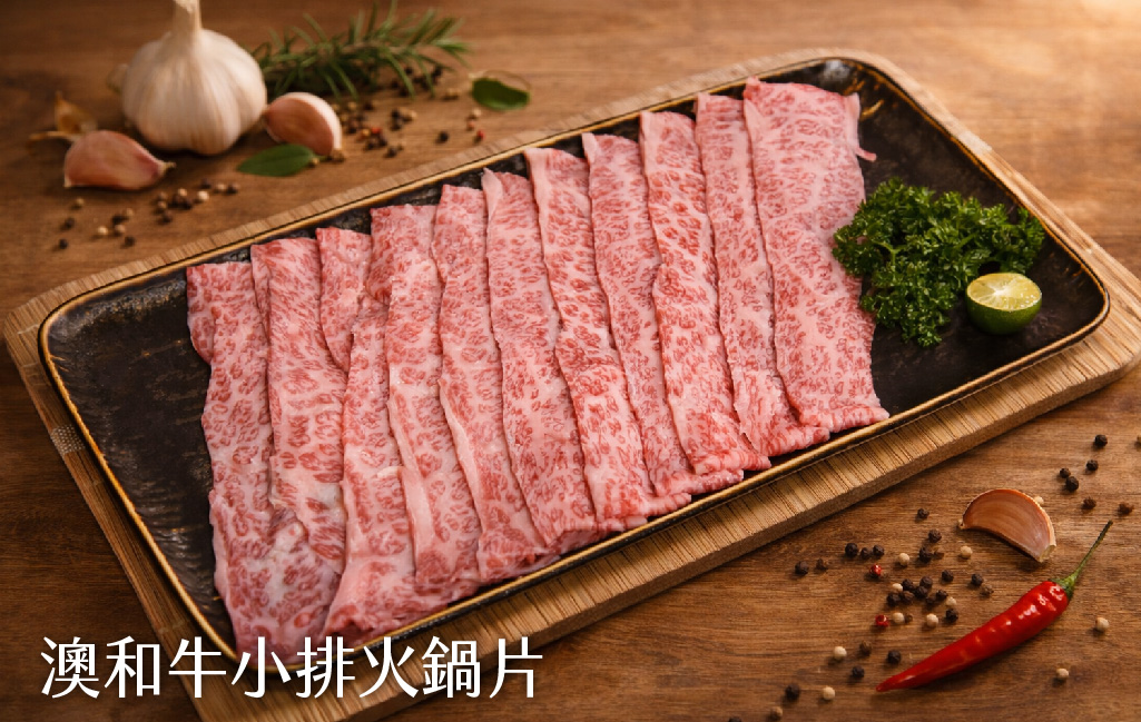 ※澳洲和牛小排火鍋片:150g/盤。油脂豐富卻不膩口,口感滑嫩Q彈,入鍋後散發迷人的焦糖奶油香氣。