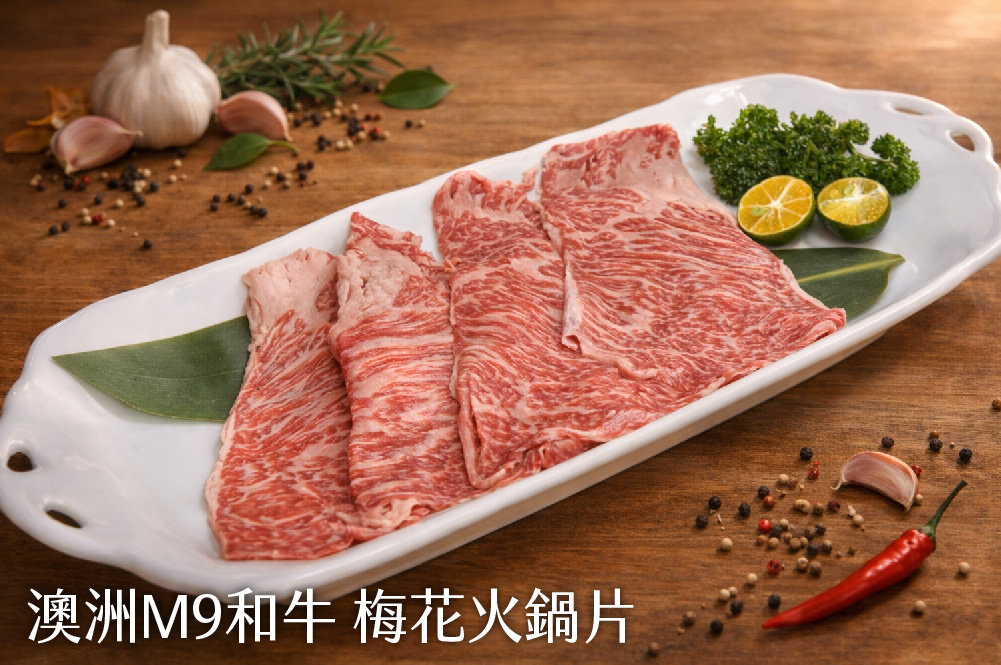 ※澳洲M9和牛背肩火鍋片:150g/盤。肉質細緻、油花適中,是火鍋中不僅吃口感、更能吃出肉香的部位。